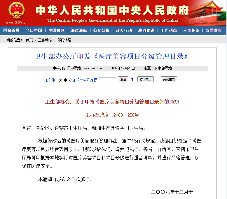 衛(wèi)生部辦公廳關(guān)于印發(fā)《醫(yī)療美容項目分級管理目錄》的通知