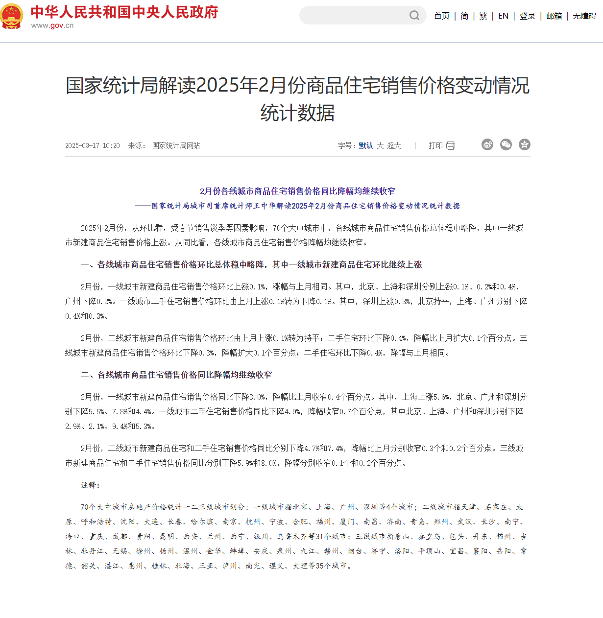 國家統(tǒng)計局解讀2025年2月份商品住宅銷售價格變動情況統(tǒng)計數(shù)據(jù)
