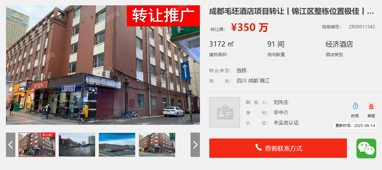 最近,成都酒店投資市場(chǎng)有點(diǎn)熱鬧。轉(zhuǎn)讓信息一波接一波。位置都不差,價(jià)格看著也挺誘人。是入場(chǎng)的好時(shí)機(jī)嗎?我們來(lái)看看具體有啥“貨”。