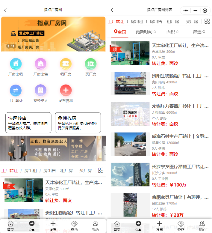 區(qū)別于中介平臺收取高額傭金的模式,指點網(wǎng)采用“免費發(fā)布信息+0傭金”策略,用戶可自主發(fā)布工廠轉(zhuǎn)讓、廠房出租、土地出讓等需求,平臺僅提供信息展示與流程支持。例如,近期南通啟東鈑金廠、昆明家紡廠等項目均通過平臺快速完成交易,轉(zhuǎn)讓方直接與買家對接,節(jié)省中間費用。