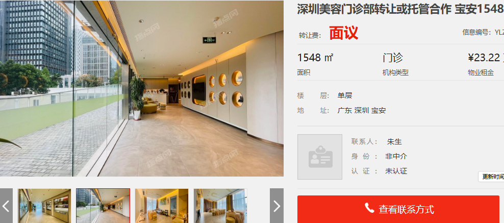 深圳美容門診部轉(zhuǎn)讓或托管合作 寶安1548平方