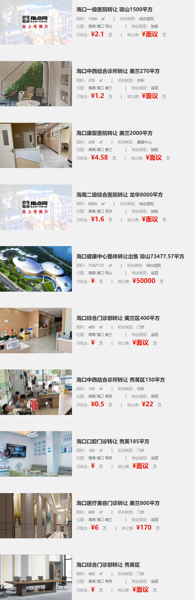 平臺房源實時更新,涵蓋各區(qū)域診所類型:從具備醫(yī)保資質(zhì)的社區(qū)門診,到可開展療養(yǎng)項目的特色中醫(yī)館,詳細標注經(jīng)營數(shù)據(jù)與資質(zhì)文件。依托大數(shù)據(jù)分析,提供區(qū)域客流預測、消費能力評估等增值信息,輔助決策。嚴格的房源核驗機制與 “無傭金” 交易模式,保障安全與成本優(yōu)勢。無論是轉(zhuǎn)讓旺季盈利的景區(qū)診所,還是布局新興片區(qū),指點網(wǎng)都能快速對接優(yōu)質(zhì)資源,讓投資者充分利用三亞 “全年無淡季” 的城市紅利,搶占醫(yī)療市場先機。