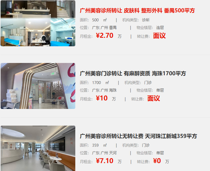 廣州美容門診轉(zhuǎn)讓 有麻醉資質(zhì) 海珠1700平方