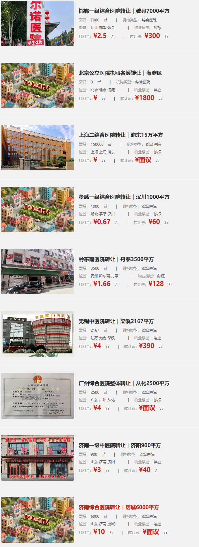 上海多所大型綜合醫(yī)院,分布各區(qū),運(yùn)營(yíng)良好、優(yōu)質(zhì),整體轉(zhuǎn)讓。