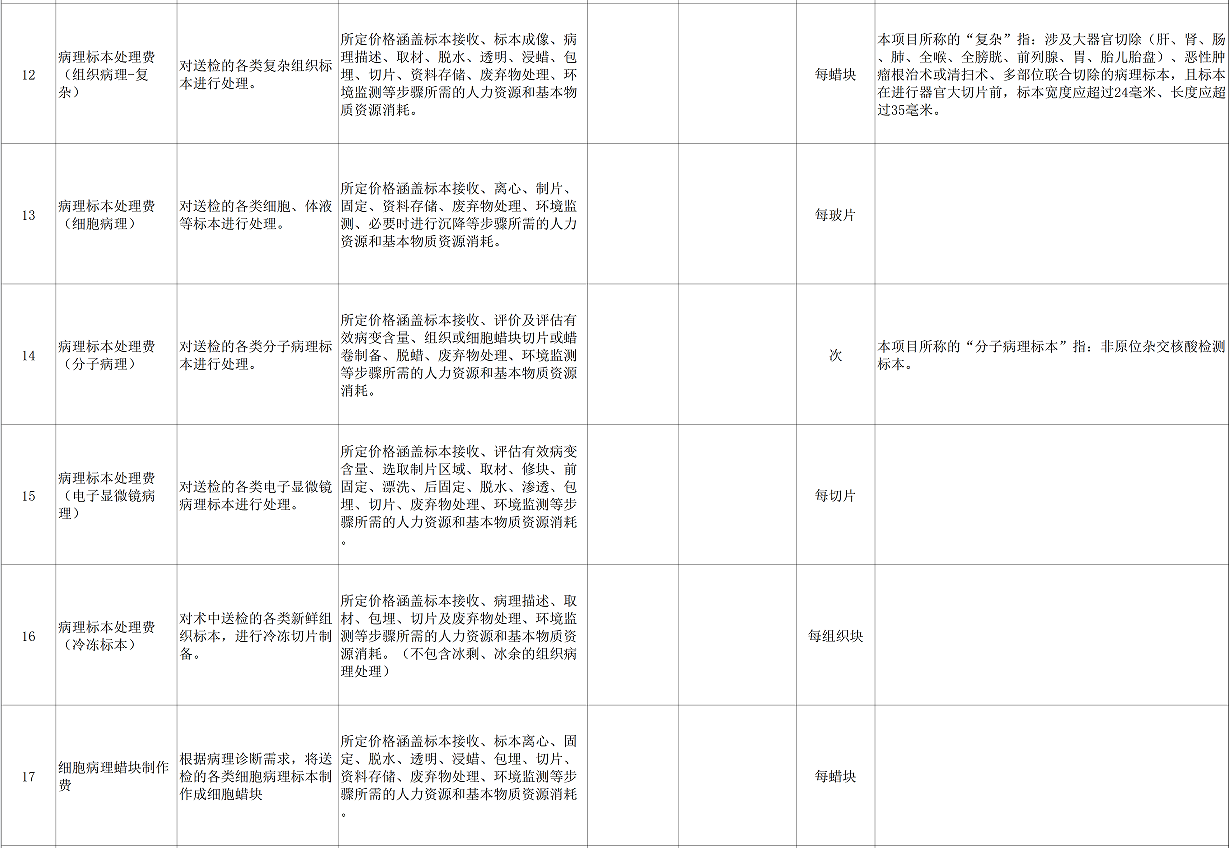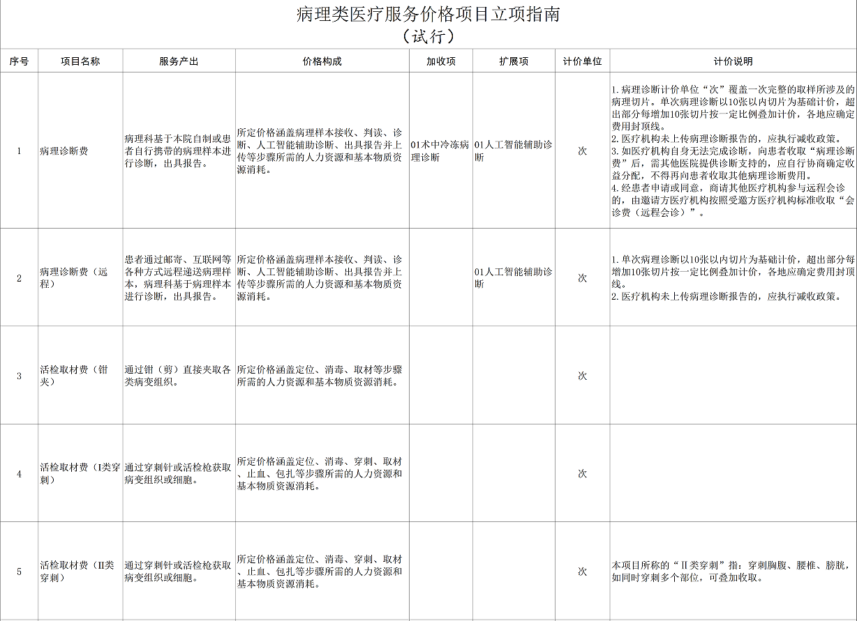 1.本立項指南以病理檢查診斷為重點,按照活檢取材、標(biāo)本處理、病理染色、分子檢測、病理診斷等分類設(shè)立病理相關(guān)醫(yī)療服務(wù)價格項目,其他檢驗類價格項目在檢驗類立項指南中另行規(guī)范,醫(yī)療機(jī)構(gòu)開展相關(guān)服務(wù)的可據(jù)實依規(guī)收費。