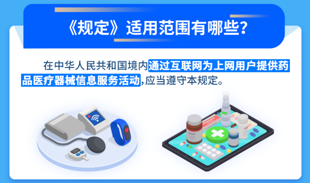 第二條 在中華人民共和國(guó)境內(nèi)通過(guò)互聯(lián)網(wǎng)為上網(wǎng)用戶提供藥品醫(yī)療器械信息服務(wù)活動(dòng),應(yīng)當(dāng)遵守本規(guī)定。
