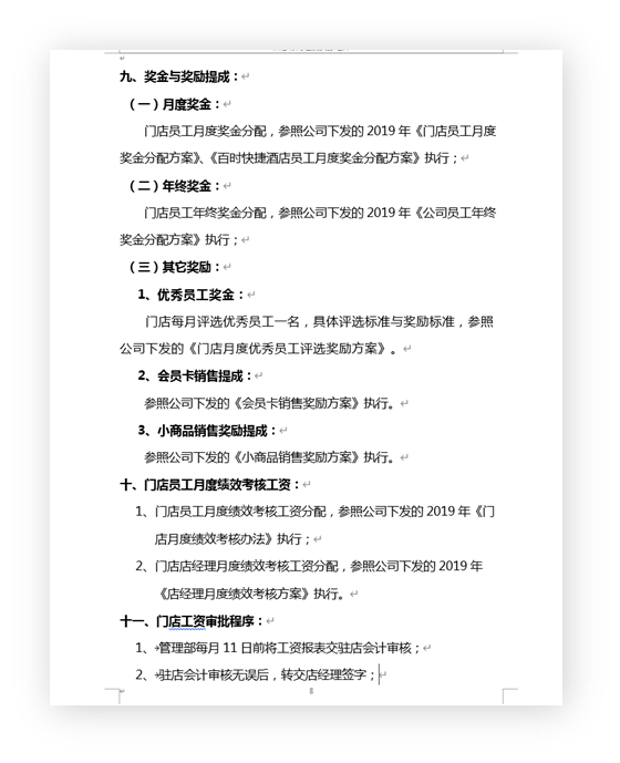 公司將門店每個(gè)崗位的薪酬等級分成十級,每級對應(yīng)的工資標(biāo)準(zhǔn),詳見(附件1)《門店各崗位薪酬等級表》。