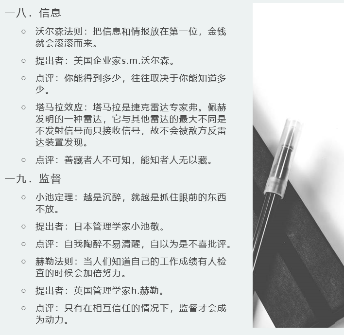 牢騷效應(yīng):凡是公司中有對(duì)工作發(fā)牢騷的人,那家公司或老板一定比沒(méi)有這種人或有這種人而把牢騷埋在肚子里公司要成功得多。