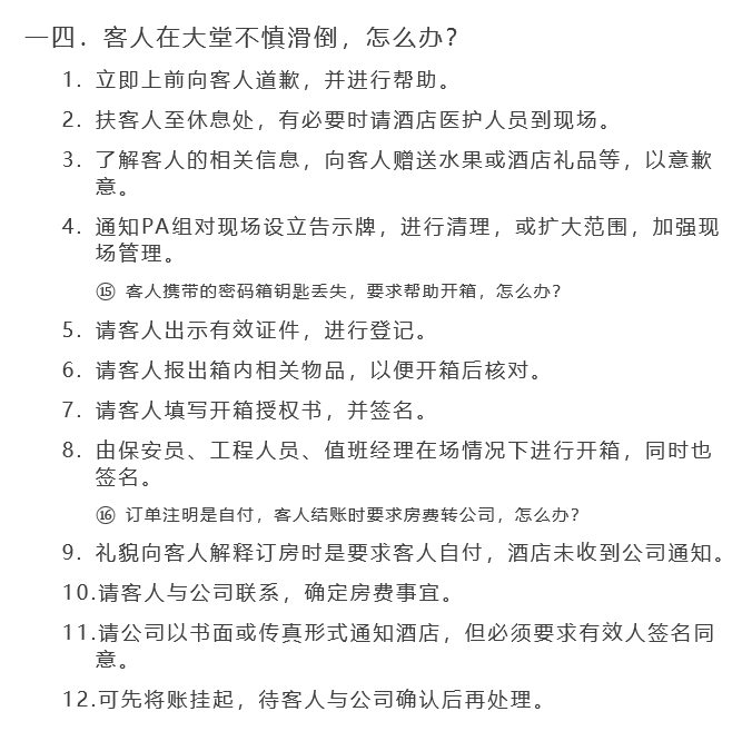 如有異議,與客人一起上房進(jìn)行查看,請客人回憶。