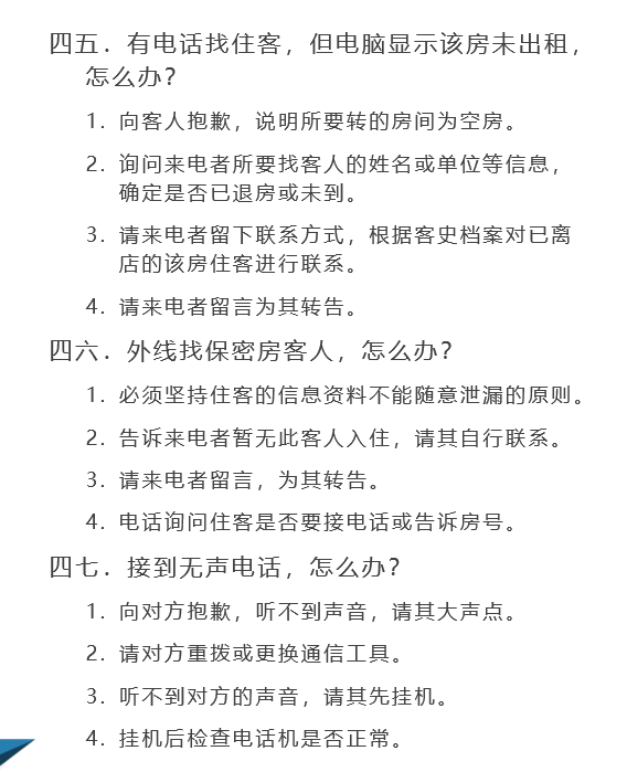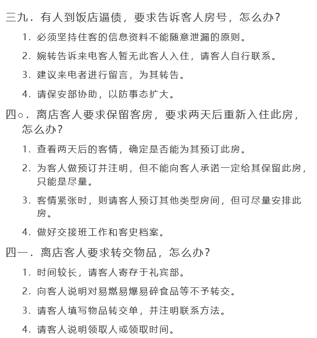 請客人告訴房號,查看該房情況,是否有特殊限制。