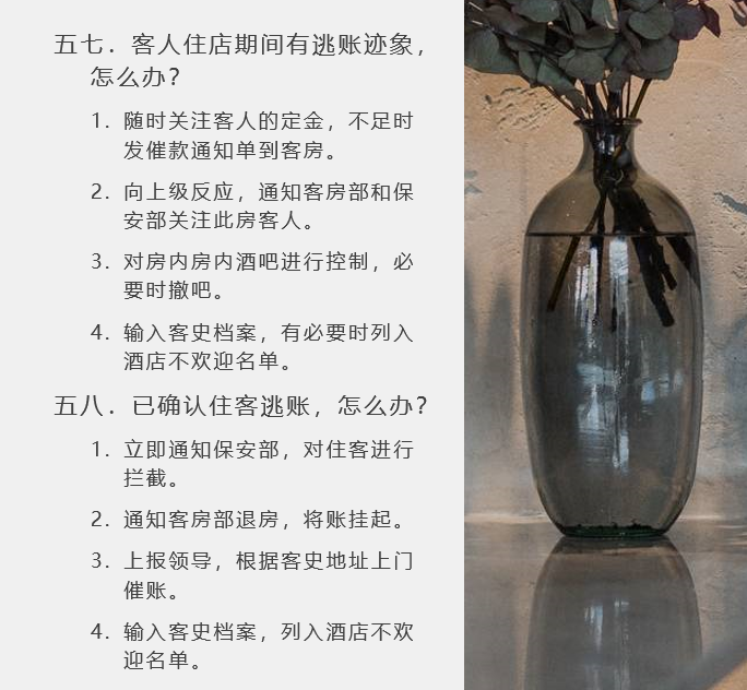 將客人欠款現(xiàn)象輸入客史檔案,有必要時列入酒店不歡迎名單。
