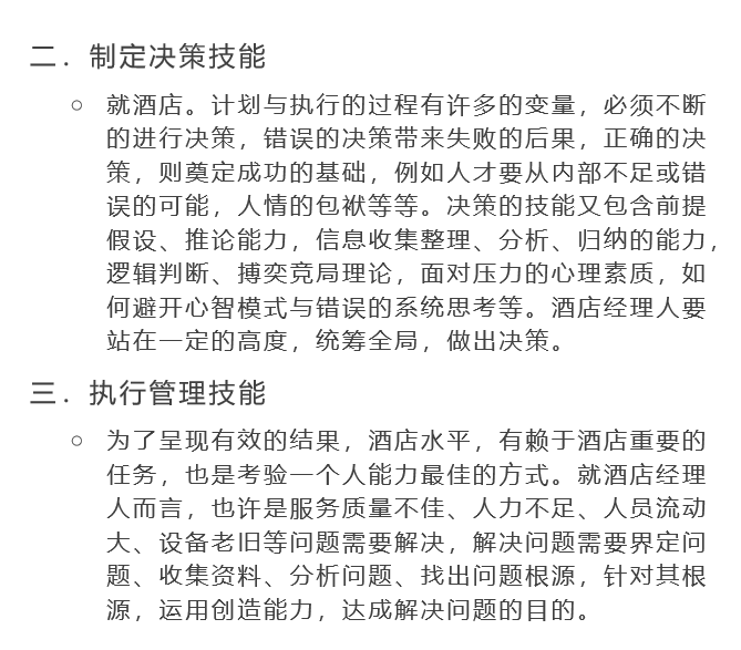 一個(gè)酒店經(jīng)理人需要具備以下三種管理技能: