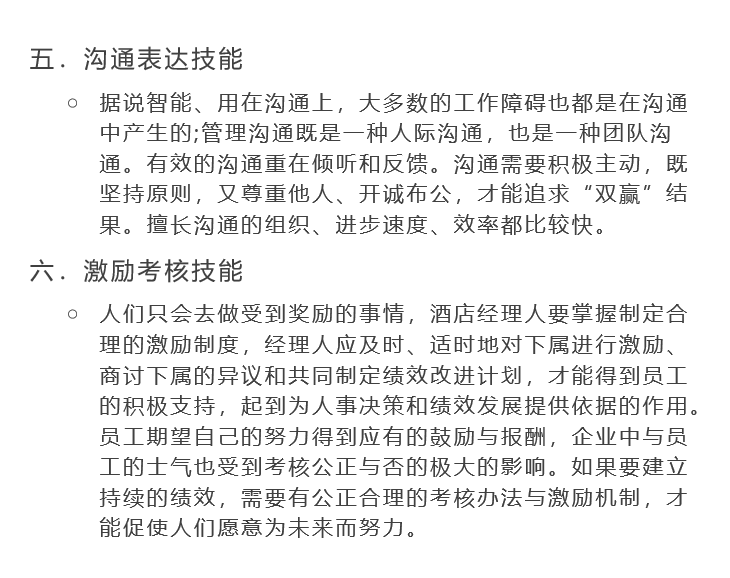 因此酒店經(jīng)理人應(yīng)具體掌握好以下幾點(diǎn)管理技能: