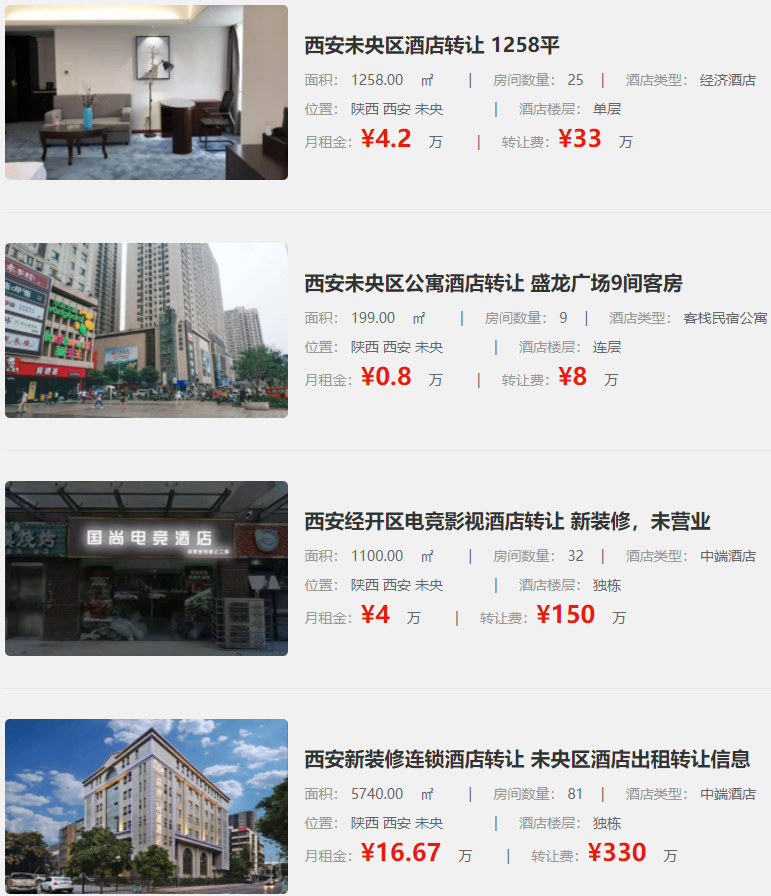 西安酒店轉(zhuǎn)讓或出租信息