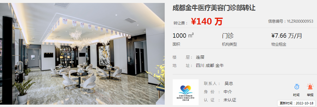 成都醫(yī)療美容門診轉(zhuǎn)讓信息