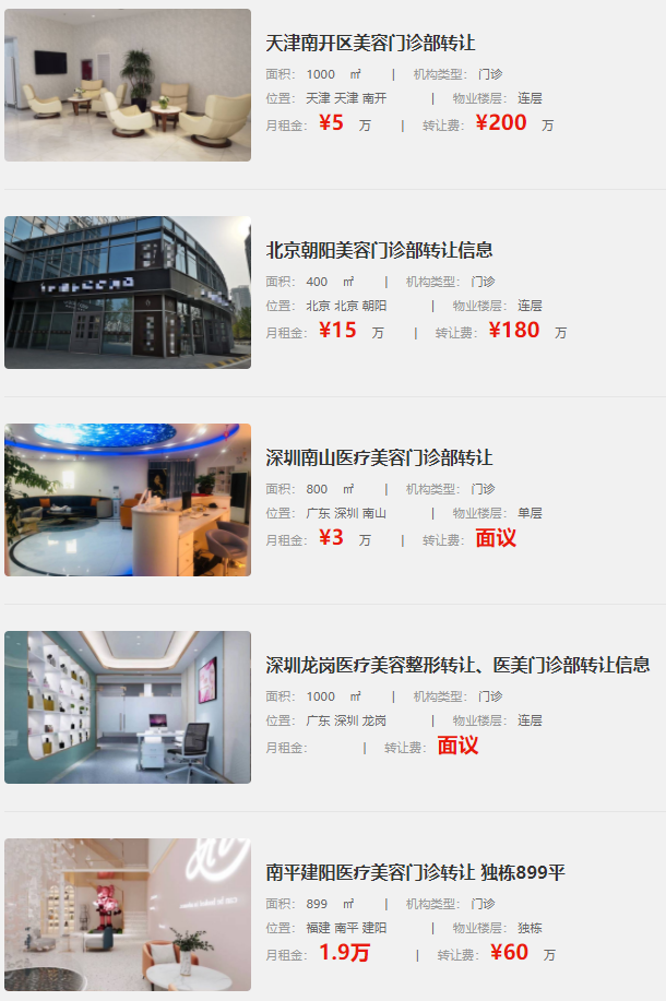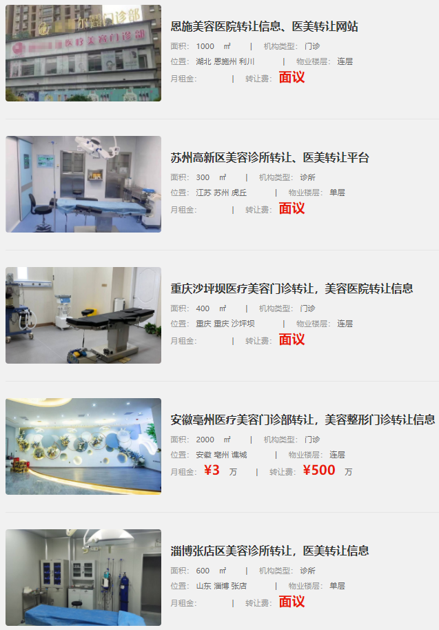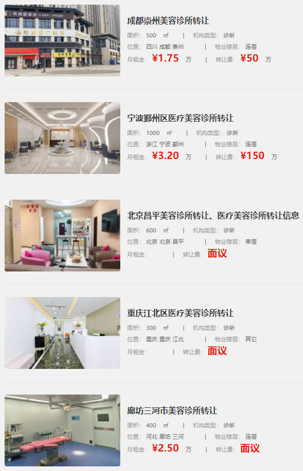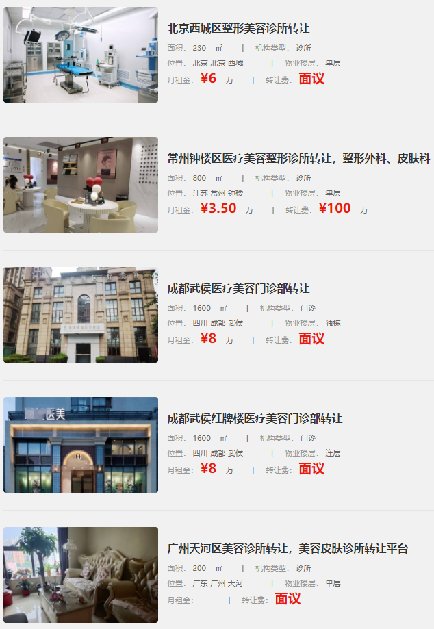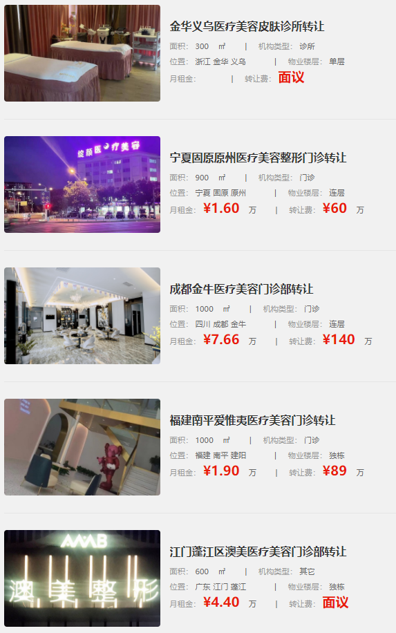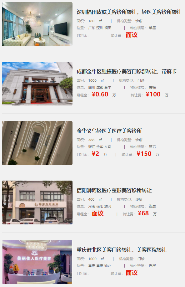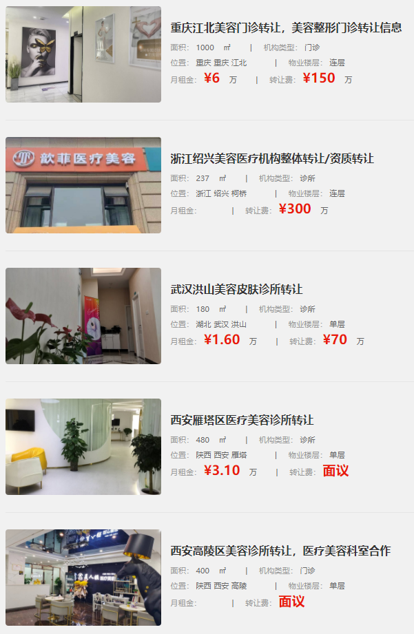 全國醫(yī)美機構(gòu)轉(zhuǎn)讓信息(部分)
