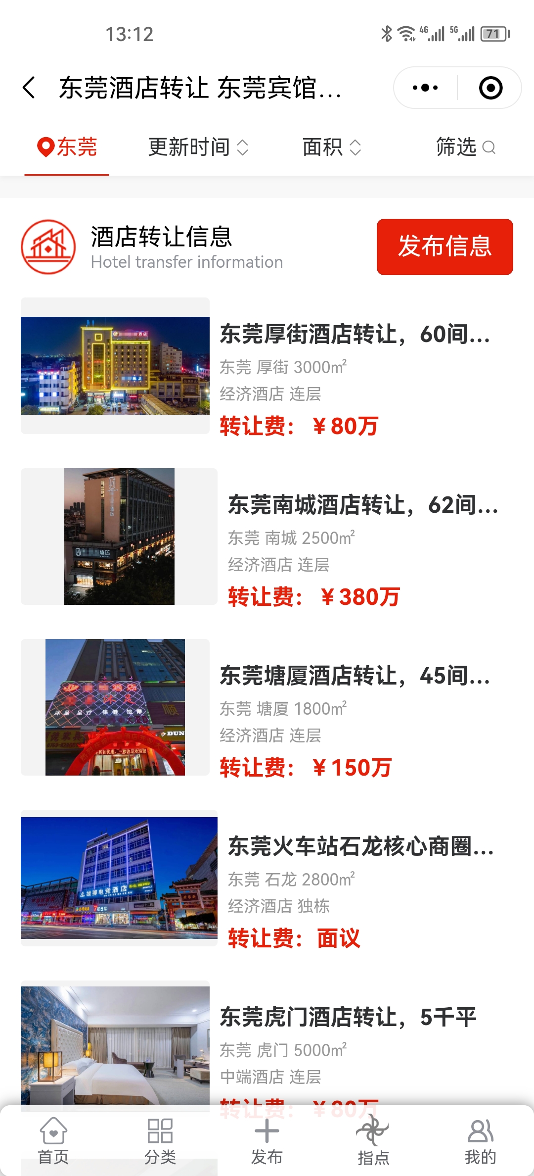 發(fā)布和查看東莞酒店轉(zhuǎn)讓最新信息。行業(yè)蕞大的酒店物業(yè)平臺(tái)。