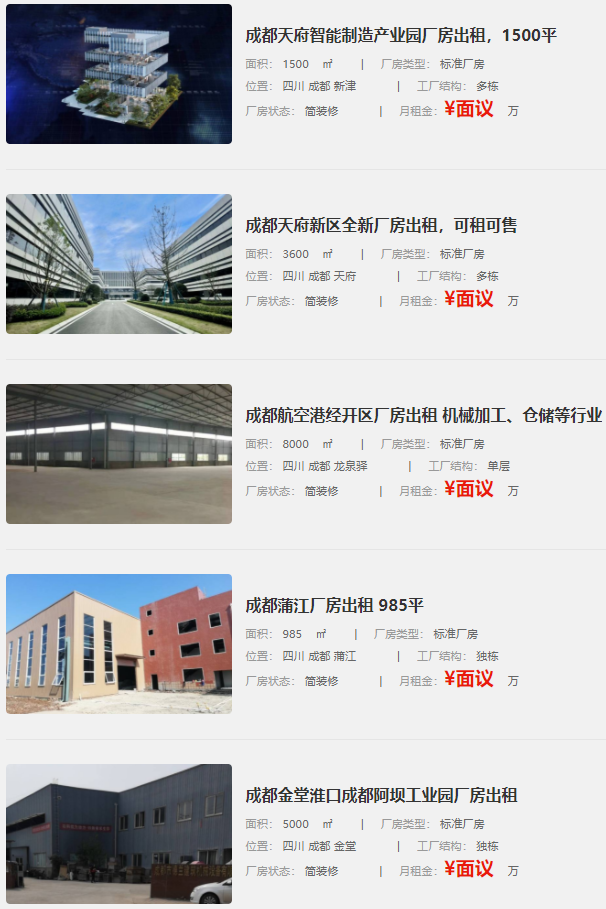 成都廠房出租哪個平臺好一點 成都廠房出租找哪個平臺好點 成都廠房出租找哪個平臺好些 成都哪里好租廠房 成都哪里有廠房出租 成都便宜的廠房出租 成都周邊廠房租售 成都找廠房去哪個網(wǎng)站