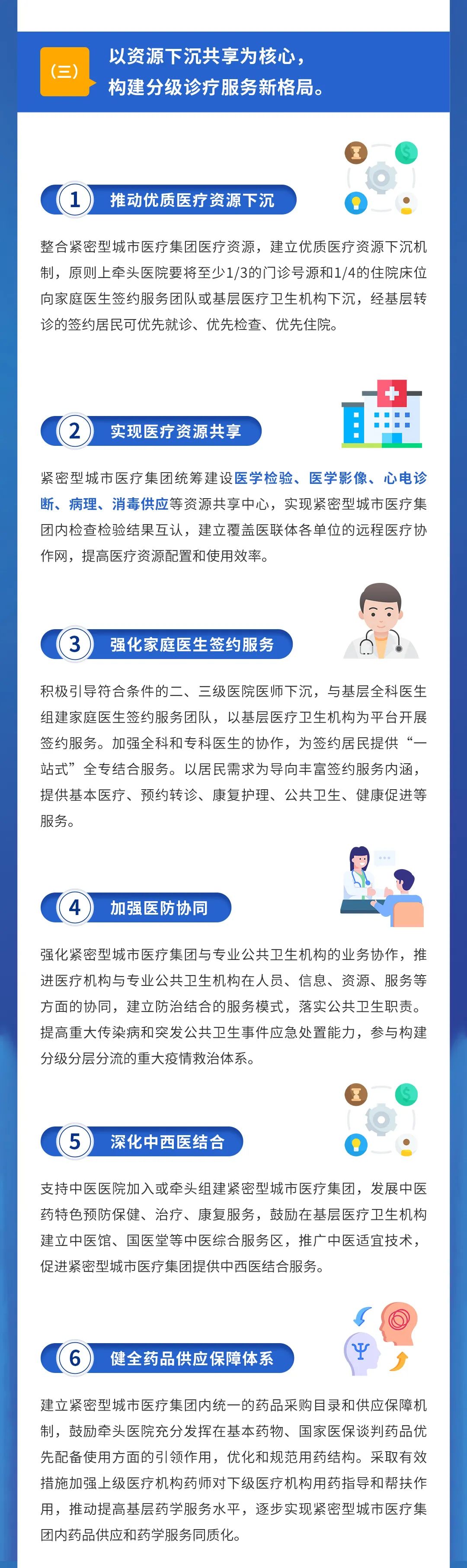 為鞏固分級(jí)診療制度建設(shè)成效,加快完善分級(jí)診療體系,推進(jìn)網(wǎng)格化布局建設(shè)緊密型城市醫(yī)療集團(tuán),不斷滿(mǎn)足人民群眾全生命周期衛(wèi)生健康服務(wù)需要,制定本方案。