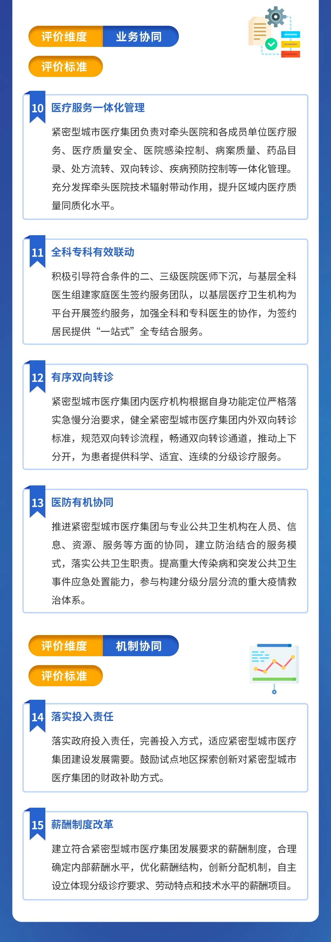 3.健全績(jī)效考核機(jī)制。建立公益性導(dǎo)向的外部考核評(píng)價(jià)機(jī)制,國(guó)家衛(wèi)生健康委牽頭組織開(kāi)展緊密型城市醫(yī)療集團(tuán)績(jī)效考核,重點(diǎn)考核網(wǎng)格化布局、就醫(yī)秩序、服務(wù)效能、運(yùn)營(yíng)管理、保障機(jī)制、滿(mǎn)意度評(píng)價(jià)等,促進(jìn)醫(yī)療資源下沉,提升基層醫(yī)療服務(wù)能力。建立健全緊密型城市醫(yī)療集團(tuán)內(nèi)部績(jī)效考核辦法,推動(dòng)牽頭醫(yī)院和各成員單位落實(shí)功能定位,加強(qiáng)城市醫(yī)療集團(tuán)的緊密管理,增強(qiáng)醫(yī)療服務(wù)連續(xù)性。