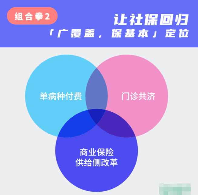 業(yè)內(nèi)人士認(rèn)為,單病種付費(fèi)+門診共濟(jì)+商業(yè)保險(xiǎn)供給側(cè)改革,就是這樣一套組合拳。這套組合拳,也是為了讓社?;貧w「廣覆蓋、保基本」的定位。