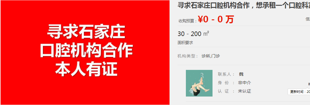 尋求石家莊口腔機(jī)構(gòu)合作,想承租一個(gè)口腔科室