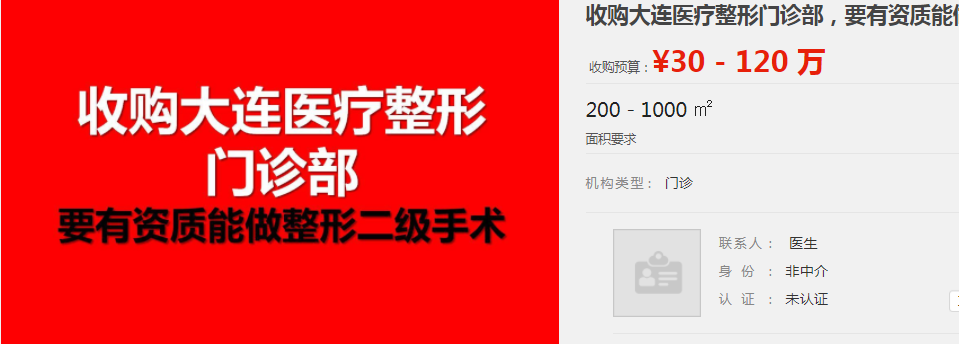 收購(gòu)大連醫(yī)療整形門(mén)診部,要有資質(zhì)能做整形