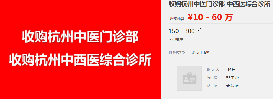 收購(gòu)杭州中醫(yī)門(mén)診部 中西醫(yī)綜合診所