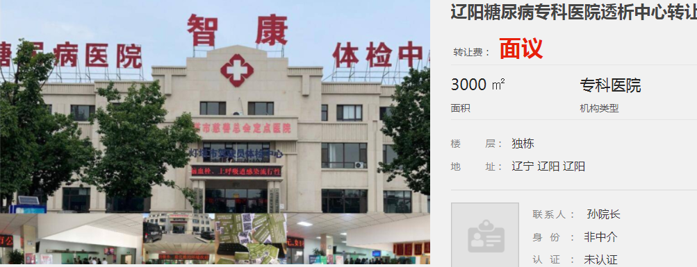 遼陽糖尿病??漆t(yī)院透析中心轉(zhuǎn)讓