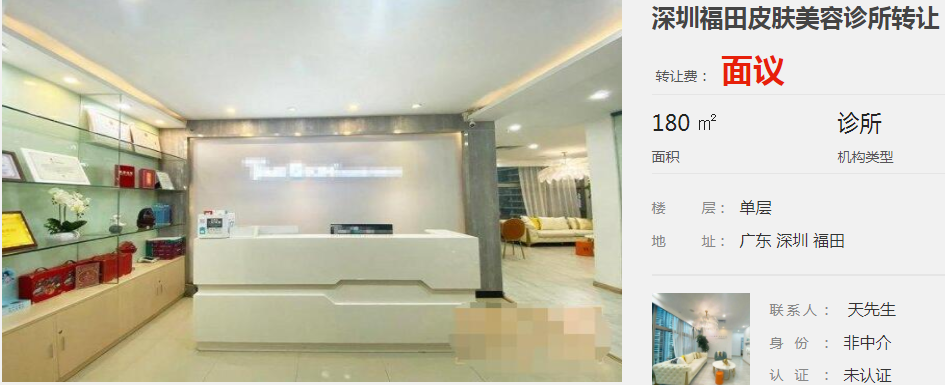 深圳南山醫(yī)療美容門診部轉(zhuǎn)讓