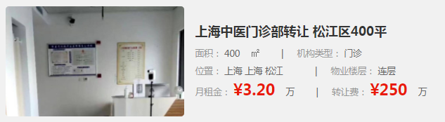 上海中醫(yī)門診部轉(zhuǎn)讓 松江區(qū)400平