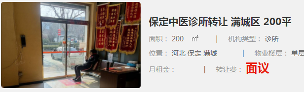 保定中醫(yī)診所轉(zhuǎn)讓 滿城區(qū) 200平