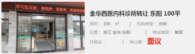 金華西醫(yī)內(nèi)科診所轉(zhuǎn)讓 東陽 100平