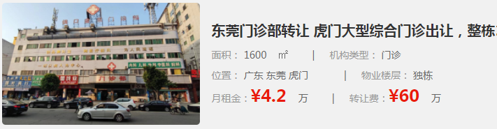 東莞門診部轉(zhuǎn)讓 虎門大型綜合門診出讓