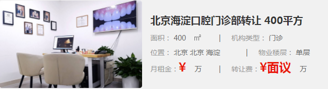 北京海淀口腔門診部轉(zhuǎn)讓 400平方