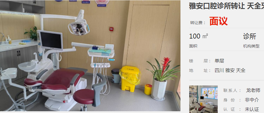 雅安口腔診所轉(zhuǎn)讓 天全牙科診所出讓 100平