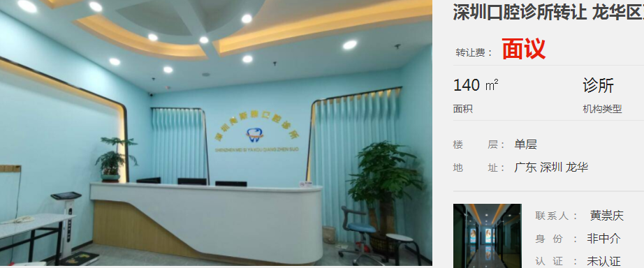 深圳口腔診所轉(zhuǎn)讓 龍華區(qū)牙科診所出讓 140平方