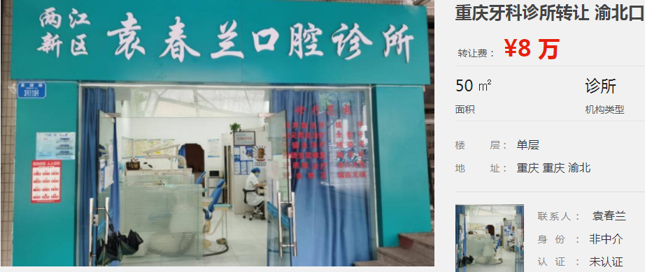 重慶牙科診所轉(zhuǎn)讓 渝北口腔診所出讓 50平方轉(zhuǎn)讓詳情