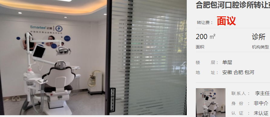 合肥包河口腔診所轉(zhuǎn)讓或加盟合作,200平