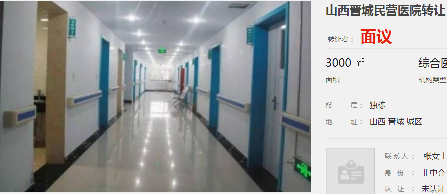 山西晉城民營醫(yī)院轉(zhuǎn)讓 3000平