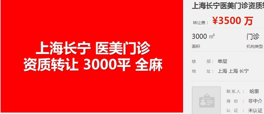 上海長寧醫(yī)美門診資質(zhì)轉(zhuǎn)讓 3000平全麻