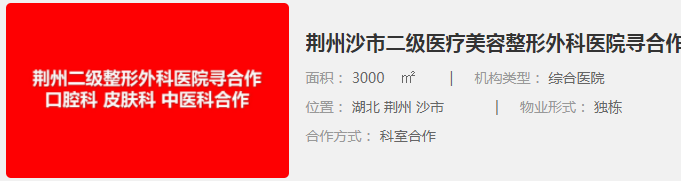 荊州沙市二級醫(yī)療美容整形外科醫(yī)院尋合作