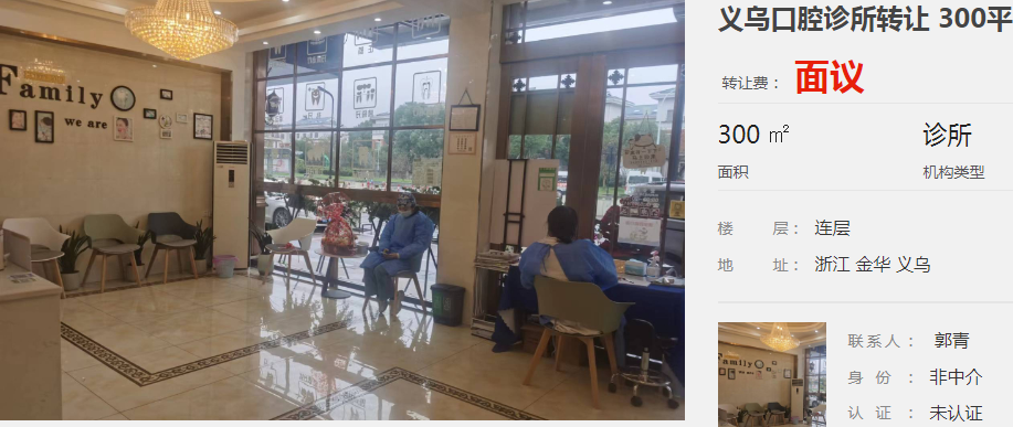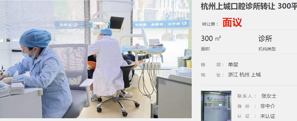 杭州上城口腔診所轉(zhuǎn)讓 300平