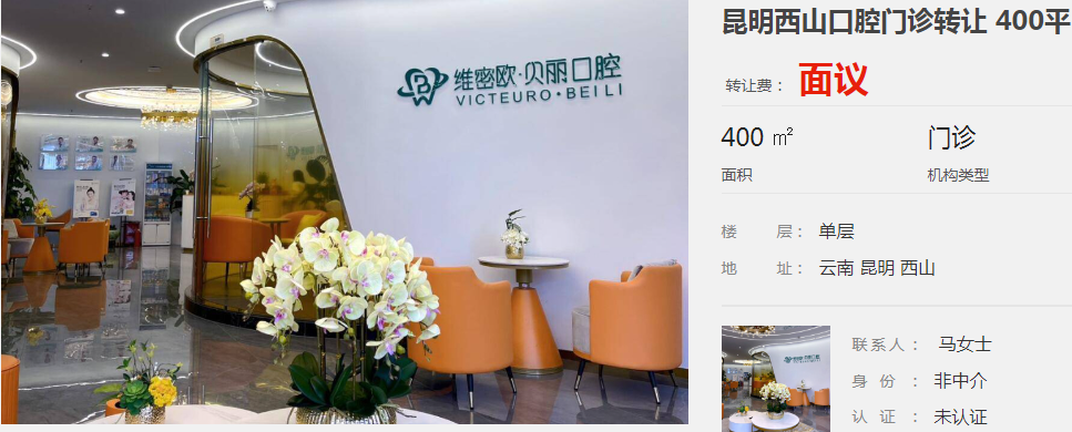 昆明西山口腔門診轉(zhuǎn)讓 400平