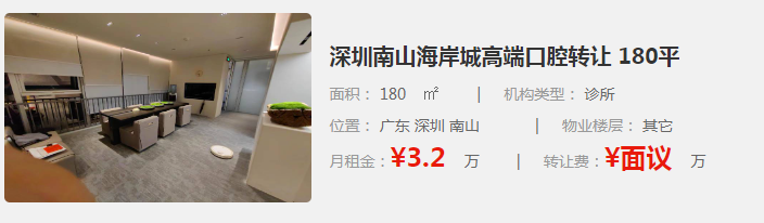 深圳南山海岸城高端口腔轉(zhuǎn)讓 180平