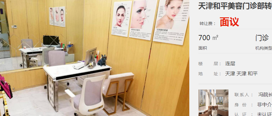 天津和平美容門診部轉(zhuǎn)讓 700平方