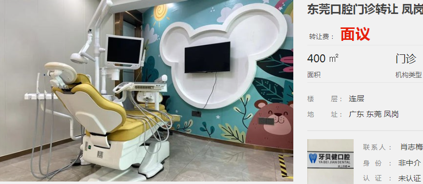 東莞口腔門診轉(zhuǎn)讓,鳳崗400平方:
