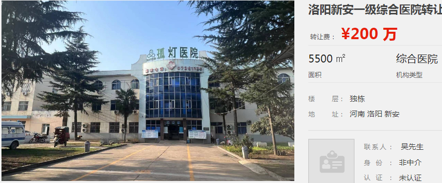 洛陽新安一級綜合醫(yī)院轉(zhuǎn)讓 200萬