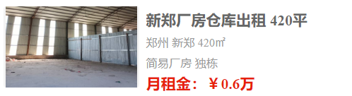 以下是一些鄭州最新廠房招租信息:(信息來(lái)源:指點(diǎn)網(wǎng)小程序)