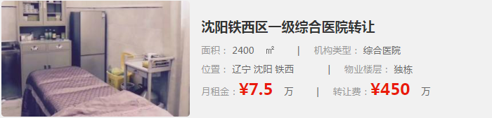 沈陽鐵西區(qū)一級綜合醫(yī)院轉(zhuǎn)讓